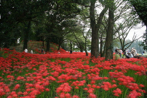 まずシリーズ最初は、今が彼岸花が盛りの大分県竹田市にある七つ森古墳からご紹介したい。古墳域全体に真っ赤な彼岸花が植えられており、カメラ撮影には絶好の場所である。