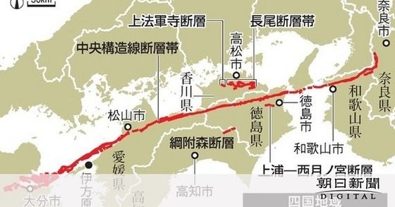 これを受けて大分県知事の広瀬氏は地元テレビ局で、「大分県はこれまで南海トラフ地震を想定して対策を練ってきた。中央構造線が大分までつながったからといって、ひっきんの急務とは思わないが、今後、対策を考えるべきだろう」旨、と述べている。大丈夫だろうか、この老人 ?