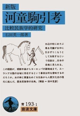 「柳田國男によると、河童は水神の零落した姿だという。「河童駒引」というのは、 河童が馬を水中に引き込む話だ。その馬を守るのが猿なのである。この「河童駒引」を ユーラシア大陸に広く伝わる水神信仰の大海の中に位置づけたのが、石田英一郎著『 河童駒引考」である。」
