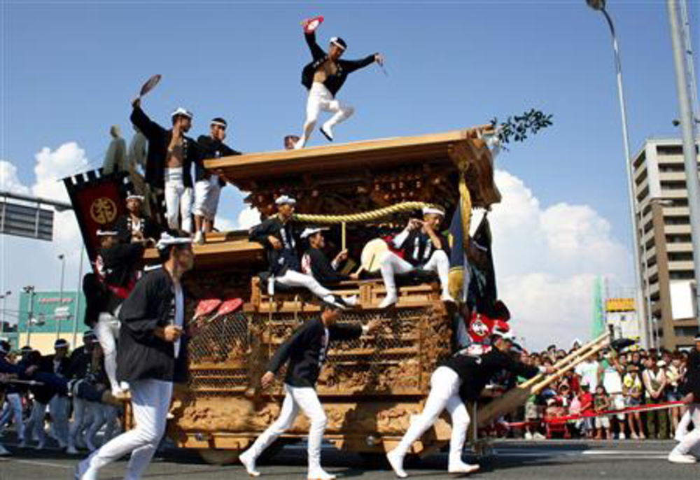 だんじりの屋根の上にそれはふんばっている。