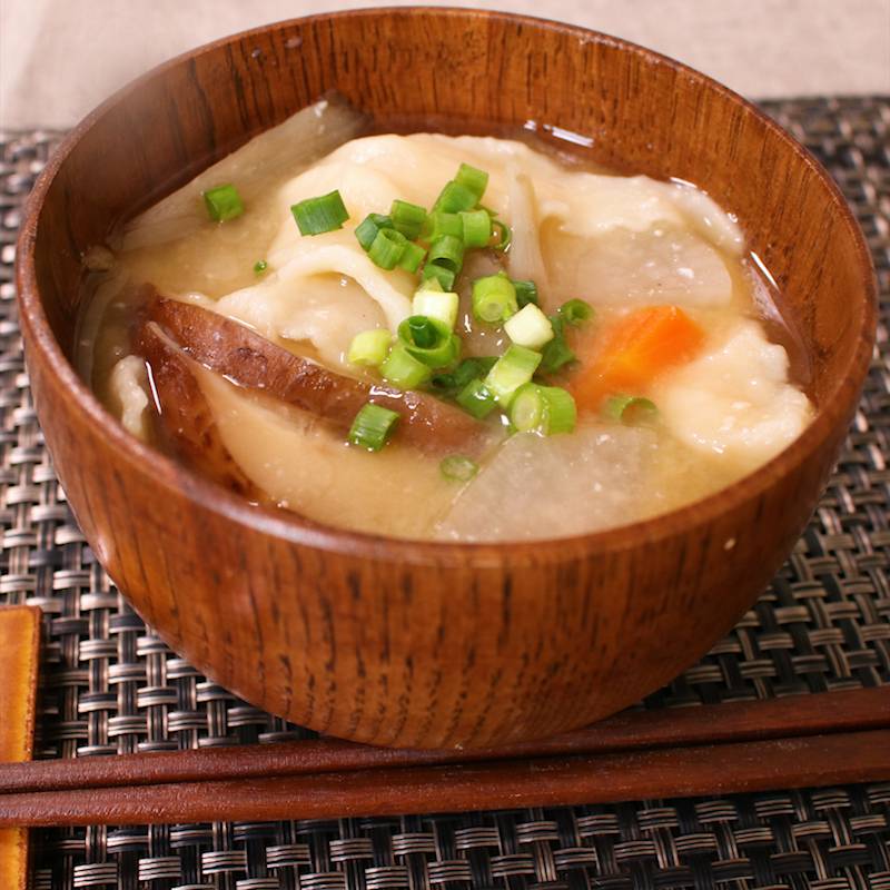熊本はだご汁と呼んでいて、「だご」は伸ばさず、小麦粉をまるめて汁に落とすもの。大分は伸ばしてほうとうにして落とす。それがでけが違う。