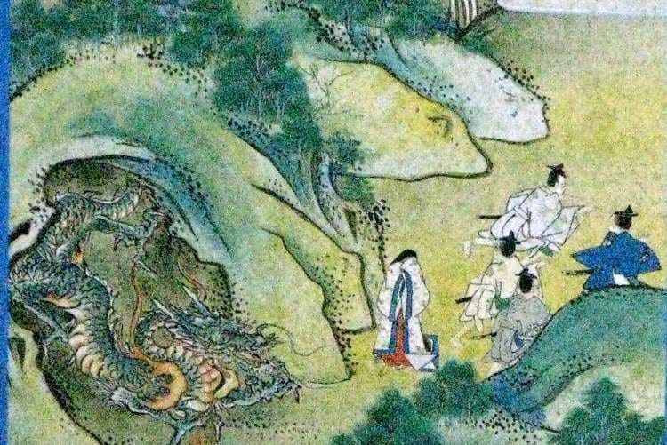 「平津駅家ひらつのうまやの西一二いちに里りに岡をかあり。名を大櫛おほくしと曰いふ。上古いにしへ、人あり。體かたちは極きはめて長大たけたかく、身みは丘壟をかの上うへに居ゐながら、手は海浜うみべたの蜃うむきを摎くじりぬ。大蛤おほうむき 也なり。其その食くらひし貝かひ、積聚つもりて岡をかと成なりき。時人ときのひと、大朽おほくちの義こころを取とりて、今は大櫛之岡おほくしのをかと謂いふ。その践ふみし跡あとは、長さ卌しじふ 歩あし余あまり、広さ廿にじふ 歩あし余あまり、尿穴ゆまりのあなの径わたり 廿にじふ 歩あし余あまり 許ばかりなり。」『常陸国風土記』那賀郡