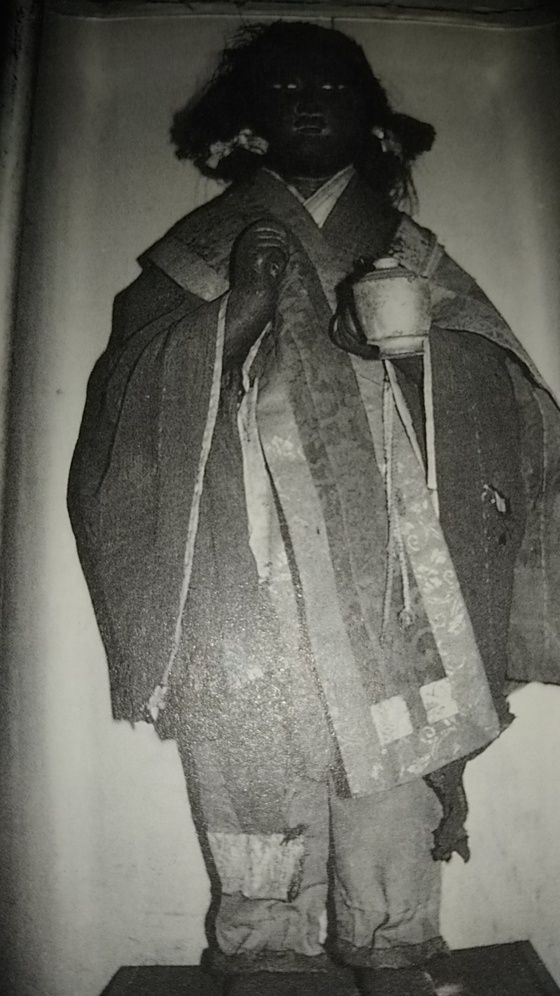 往古から信者に触られて顔が真っ黒になった聖徳太子像