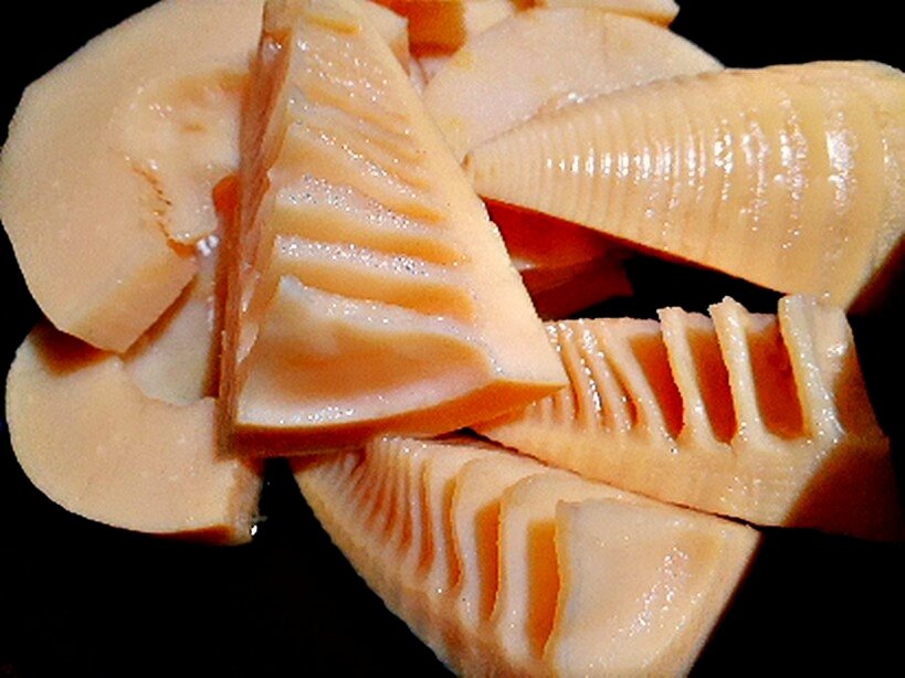 「タケノコですが、特に水煮のものをカットしたとき、節と節の間に白い結晶のようなものが付いていることがあります。これは「チロシン」というアミノ酸の一種で、水に溶けにくい性質を持つため、結晶となってタケノコの内部に残るのだそうです。タケノコの旨味成分でもあり、食べても害はないとされています。